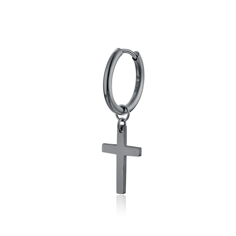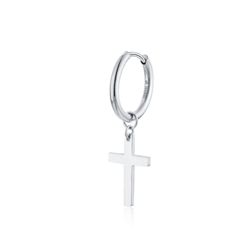ORECCHINO CERCHIO CON CROCE ACCIAIO