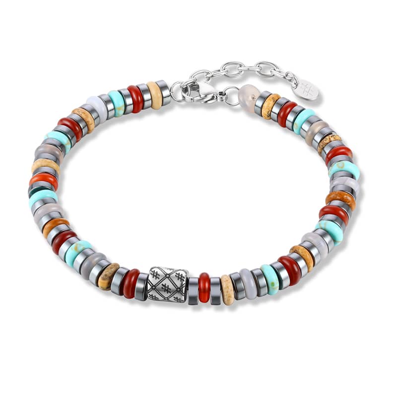 Bracciale Pietre Turchesi Rosse Beige ed Ematite