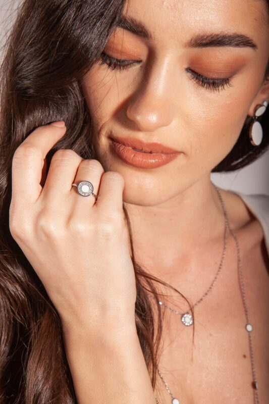 Wir sind davon überzeugt, dass wahre Eleganz auf Respekt beruht: für die Trägerin unseres Schmucks, für die Menschen, die ihn herstellen, und für die Umwelt. Deshalb wählen wir nur zertifizierte, sichere und langlebige Materialien, die ihren Glanz über die Zeit erhalten.