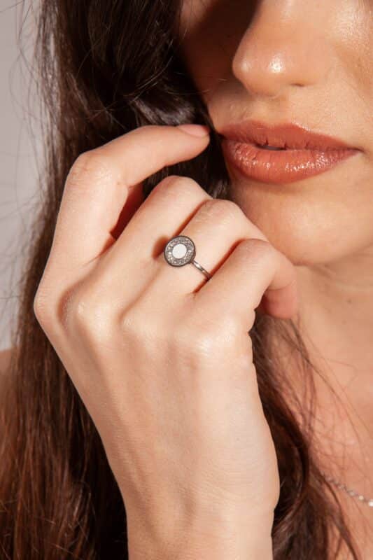 Ring mit weißer Emaille und Kristall