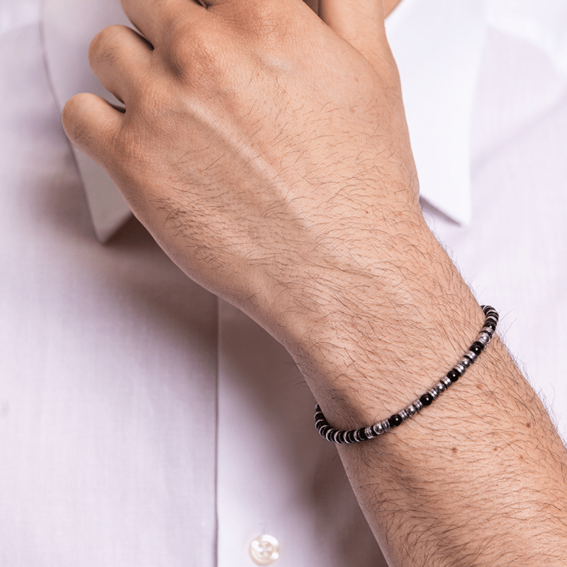 Armband aus Hämatit und 5 schwarzen Achatkugeln