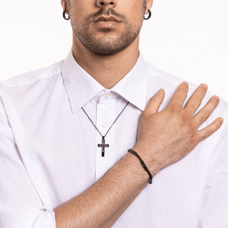 Wir verwenden rostfreien Stahl, ein hypoallergenes Material, das oxidations-, korrosions- und wasserbeständig ist. Jedes Produkt wird von Konformitätszertifikaten begleitet, die die Reinheit des Stahls und seine Unbedenklichkeit für den Kontakt mit der Haut bescheinigen, in Übereinstimmung mit den europäischen Vorschriften über Nickel, Blei und Kadmium.