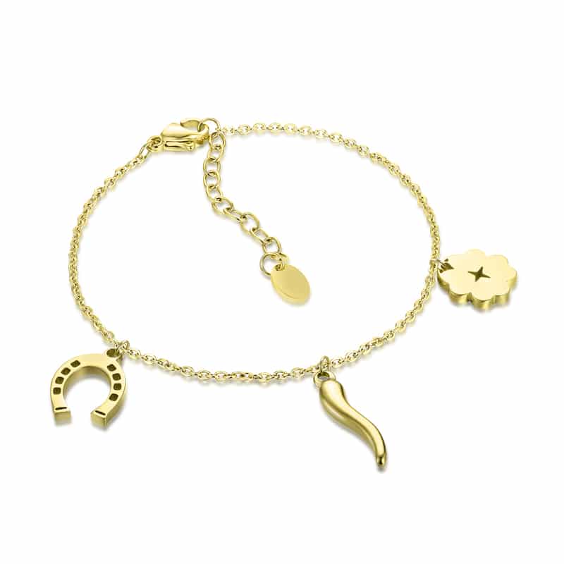 Bracciale con Quadrifoglio, Ferro di Cavallo e Cornetto