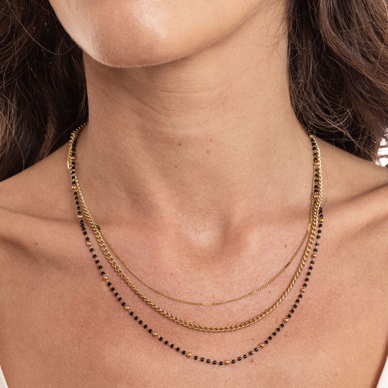 Jetzt kaufenDreifach geflochtene Halskette mit schwarzen Miyuki-Perlen