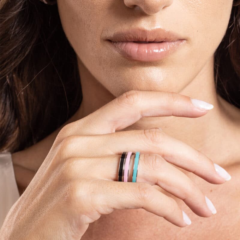 Stahlbandring mit weichem Verschleiß und türkisfarbener Emaille