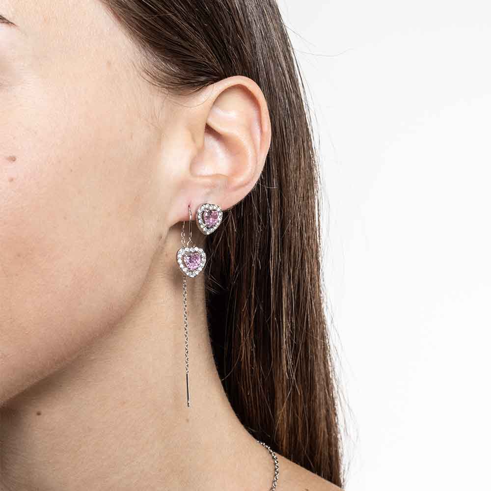 Ohrhänger mit rosafarbenem Herzanhänger aus Kristall