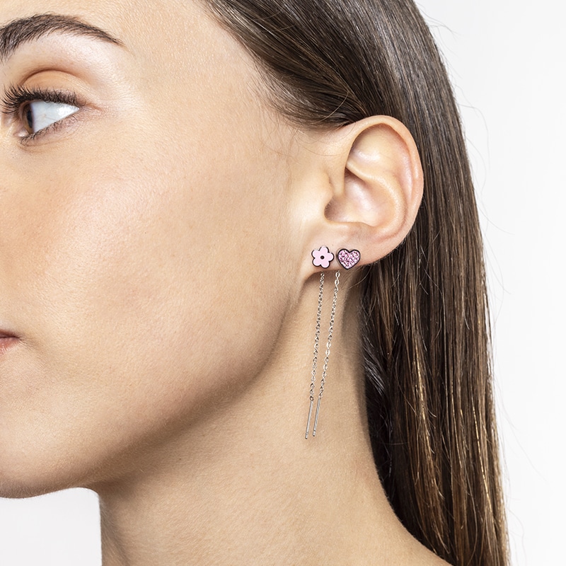 L’orecchino singolo saliscendi cuore firmato #Brand Gioielli si distingue per il suo design fresco e giocoso, caratterizzato da soggetti smaltati dai colori vivaci abbinati a una sottile catenina che crea un elegante effetto movimento. La catena sottile dona dinamismo e luminosità ad ogni gesto. Realizzati in acciaio inossidabile e dettagli smaltati, uniscono resistenza e stile contemporaneo. Perfetti per aggiungere un tocco di colore e personalità al look quotidiano, possono essere indossati da soli per un effetto delicato oppure abbinati ad altri orecchini per creare combinazioni divertenti e moderne.