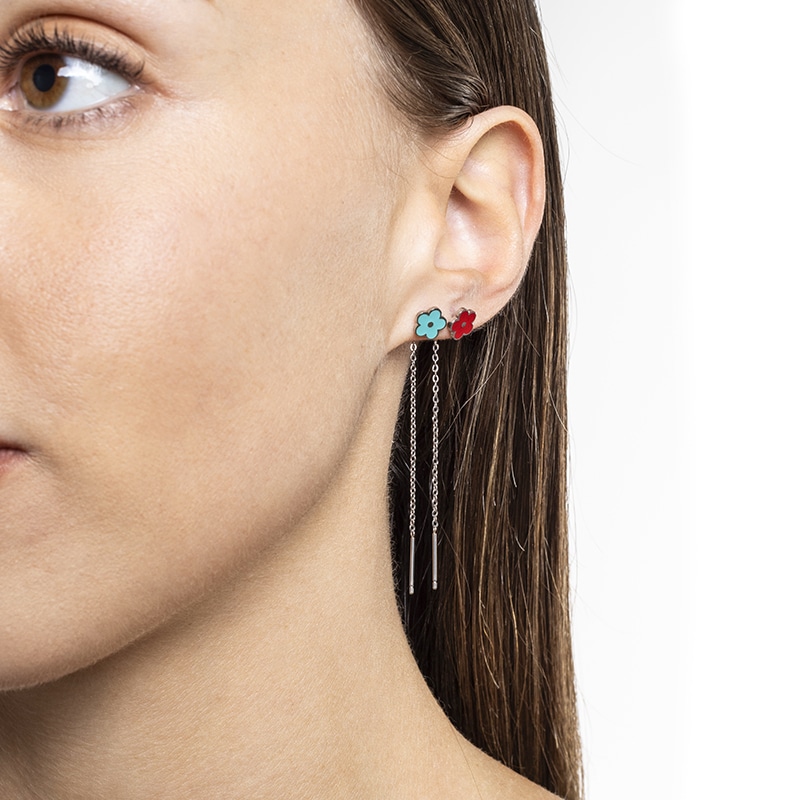 Der einzelne Blütenohrring von #Brand Gioielli besticht durch sein frisches und verspieltes Design. Leuchtend farbige Emaille-Motive harmonieren perfekt mit der zarten Kette, die für eine elegante, fließende Bewegung sorgt. Die Kette verleiht jeder Bewegung Dynamik und Leuchtkraft. Gefertigt aus Edelstahl mit Emaille-Details, vereinen die Ohrringe Langlebigkeit und modernen Stil. Sie eignen sich perfekt, um Ihrem Alltagslook einen Farbtupfer und Persönlichkeit zu verleihen und können einzeln für einen zarten Look oder in Kombination mit anderen Ohrringen für trendige und moderne Outfits getragen werden.
