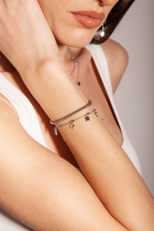 Double Pallini Bracelet with Steel Pendant Stars