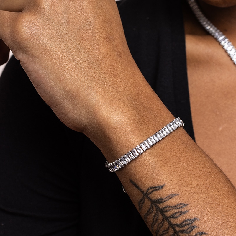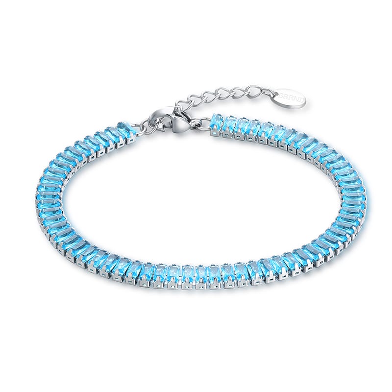 Il bracciale tennis con cristalli a baguette firmato #Brand Gioielli si distingue per il suo design raffinato e luminoso, caratterizzato da una sequenza continua di cristalli taglio baguette che creano un elegante effetto di luce lungo tutto il polso. Le linee geometriche e ordinate donano al gioiello uno stile moderno e sofisticato, perfetto per chi ama accessori brillanti ma dal gusto contemporaneo. Realizzato in acciaio inossidabile, resistente e confortevole, è pensato per garantire qualità e durata nel tempo senza rinunciare all’eleganza. Ideale da indossare ogni giorno o nelle occasioni speciali, può essere portato da solo per un effetto luminoso e deciso oppure abbinato ad altri bracciali per creare combinazioni più ricercate. Disponibile anche in altre due varianti colore, offre la possibilità di scegliere la tonalità più adatta al proprio stile mantenendo sempre un’allure brillante e distintiva.