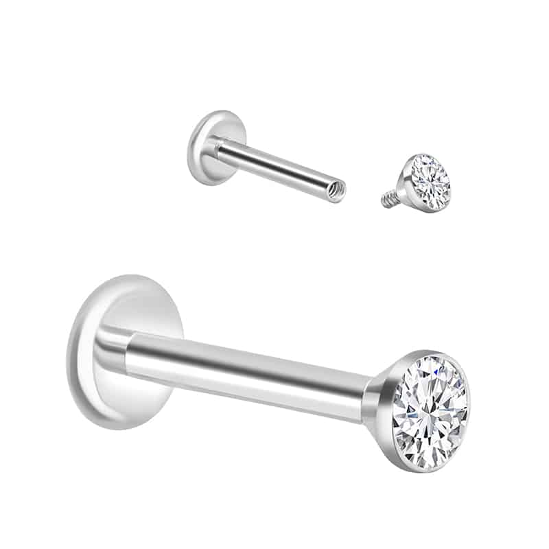 Piercing Labret Filettato Internamente con Cristallo