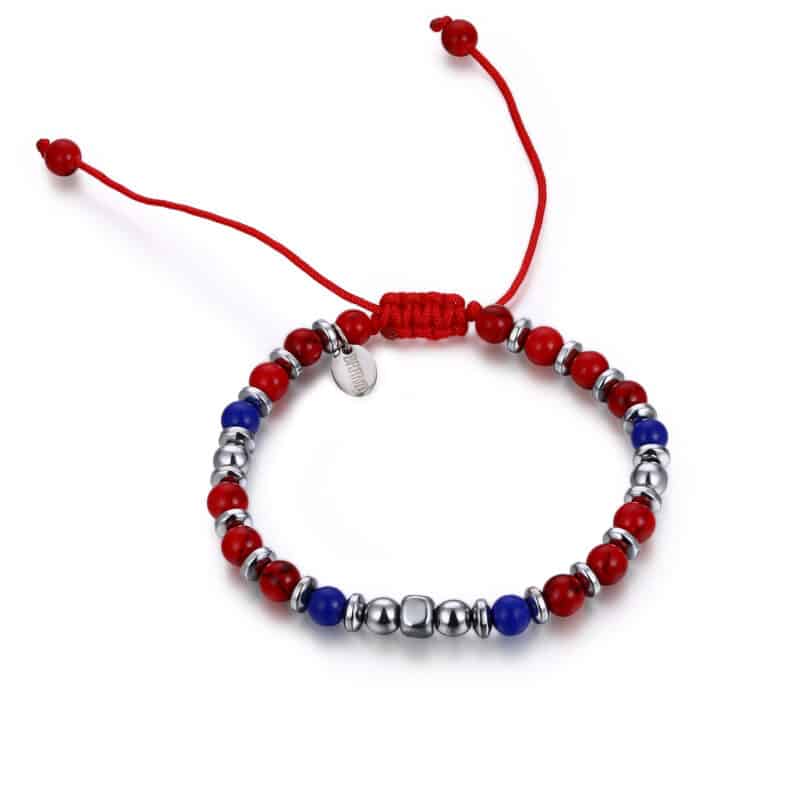 Bracelet en cordon de pierre rouge et bleue