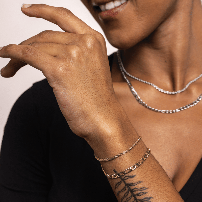 La qualité de nos bijoux réside dans le choix des matériaux. Chaque création est réalisée exclusivement à partir de l'acier inoxydable le plus pur du marché, de zircon cubique de haute qualité et de pierres soigneusement sélectionnées pour garantir la beauté, la durabilité et la sécurité du porteur.