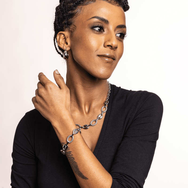 La qualité de nos bijoux réside dans le choix des matériaux. Chaque création est réalisée exclusivement à partir de l'acier inoxydable le plus pur du marché, de zircon cubique de haute qualité et de pierres soigneusement sélectionnées pour garantir la beauté, la durabilité et la sécurité du porteur.