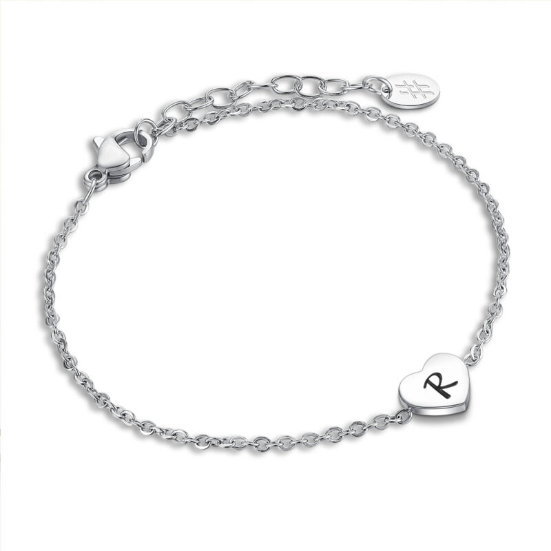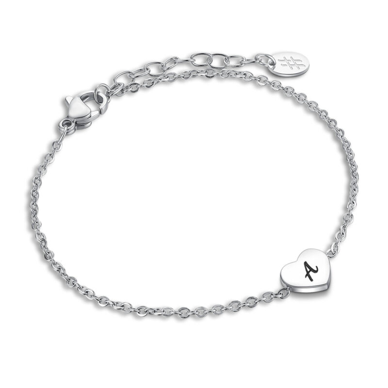 petit cœur central avec lettre gravée.