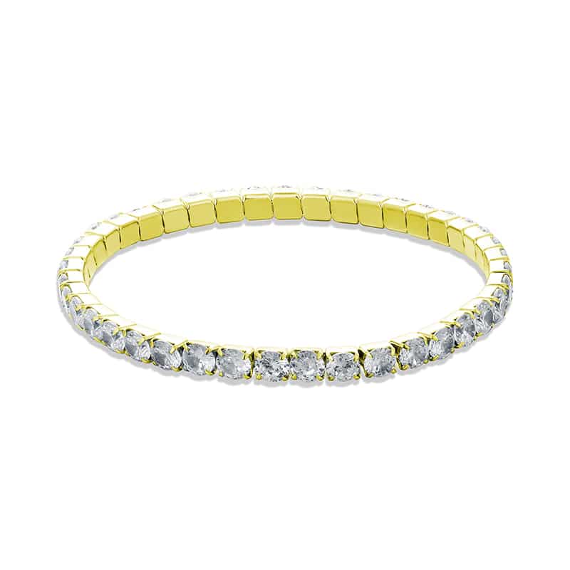 Le bracelet tennis extensible maxi pour femme de la marque Gioielli (#Brand) se distingue par son style élégant et intemporel. Une rangée régulière de cristaux apporte éclat et sophistication à son design. Ses lignes épurées et ses proportions harmonieuses subliment une esthétique classique, revisitée avec une touche contemporaine pour s'adapter à toutes les occasions. Disponible en plusieurs couleurs et finitions, ce bracelet vous permet de choisir la version qui correspond le mieux à votre style. Pièce polyvalente et sophistiquée, il se porte aussi bien seul qu'associé à d'autres accessoires pour parfaire votre tenue d'une élégance discrète.