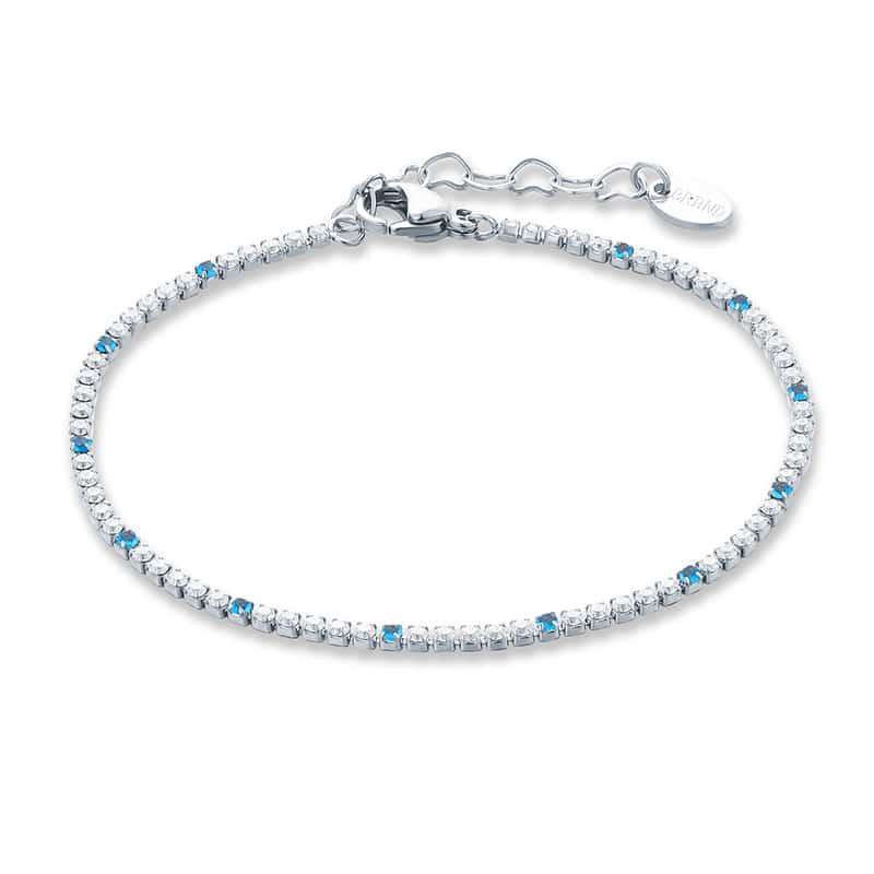 Le bracelet tennis micro à pois colorés pour femme de la marque Gioielli (#Brand) se distingue par son design élégant et intemporel, orné d'une subtile succession de cristaux lumineux harmonieusement agencés. Ce bracelet tennis classique est revisité dans un esprit contemporain grâce à un rythme équilibré qui alterne cristaux blancs et touches de couleur, créant un jeu de lumière et de mouvement raffiné. Ses lignes épurées et son acier brillant soulignent un style simple et sophistiqué, faisant de ce bracelet un accessoire polyvalent, idéal au quotidien ou pour apporter une touche d'éclat et d'originalité à des tenues plus habillées.