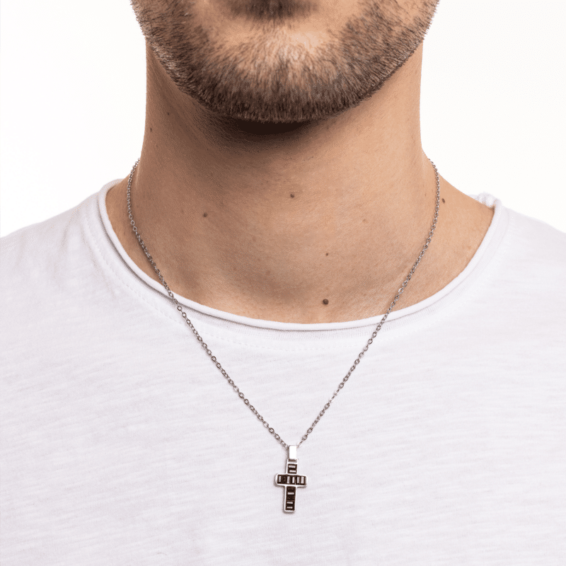 Collier croix épaisse avec cristaux noirs