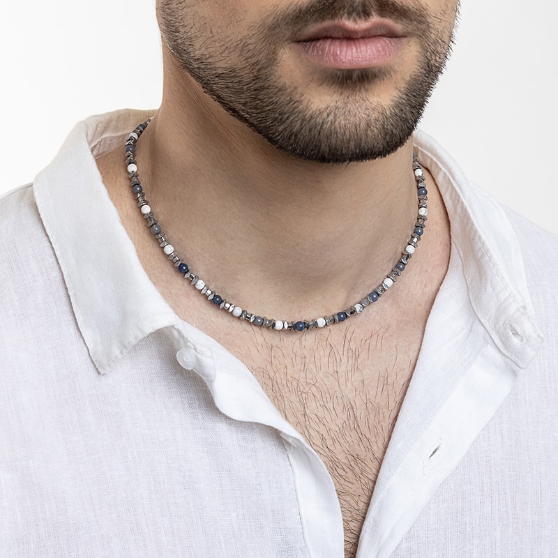 Collier pour homme orné d'hématite, d'aventurine bleue et de turquoise blanche