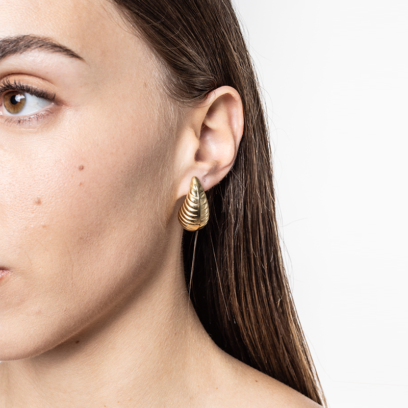 Boucle d'oreille goutte d'eau rayée version pvd or