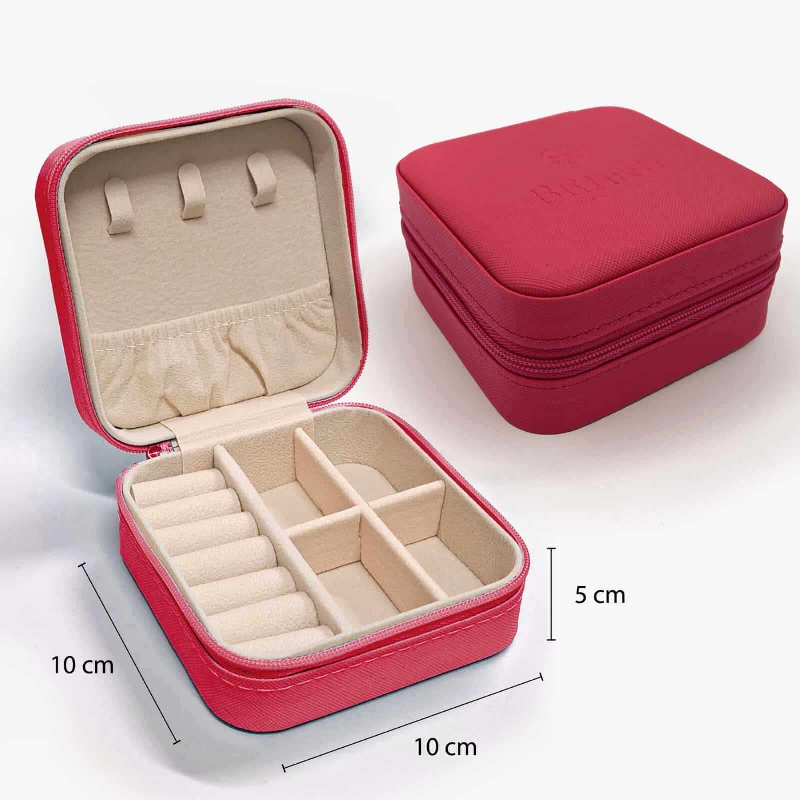 Découvrez la pratique boîte de voyage carrée de la marque Gioielli ! Disponible en six couleurs tendance, sa taille compacte (10x10x5) la rend idéale pour votre prochain voyage.