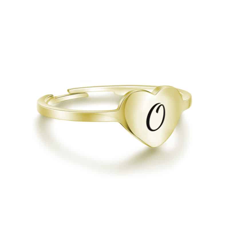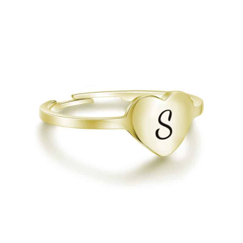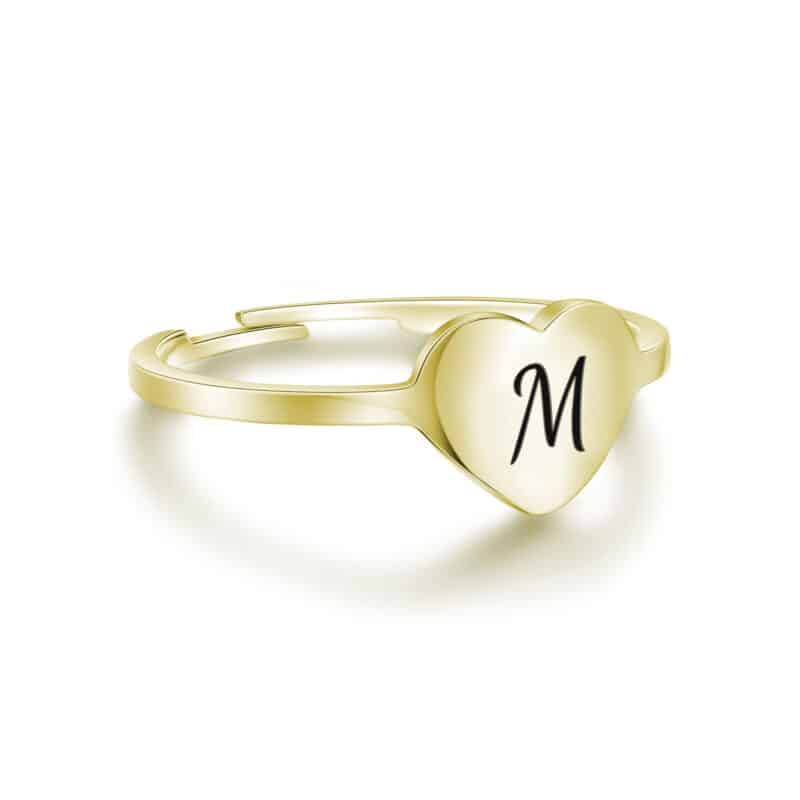 piccolo cuore con lettera smaltata nera.