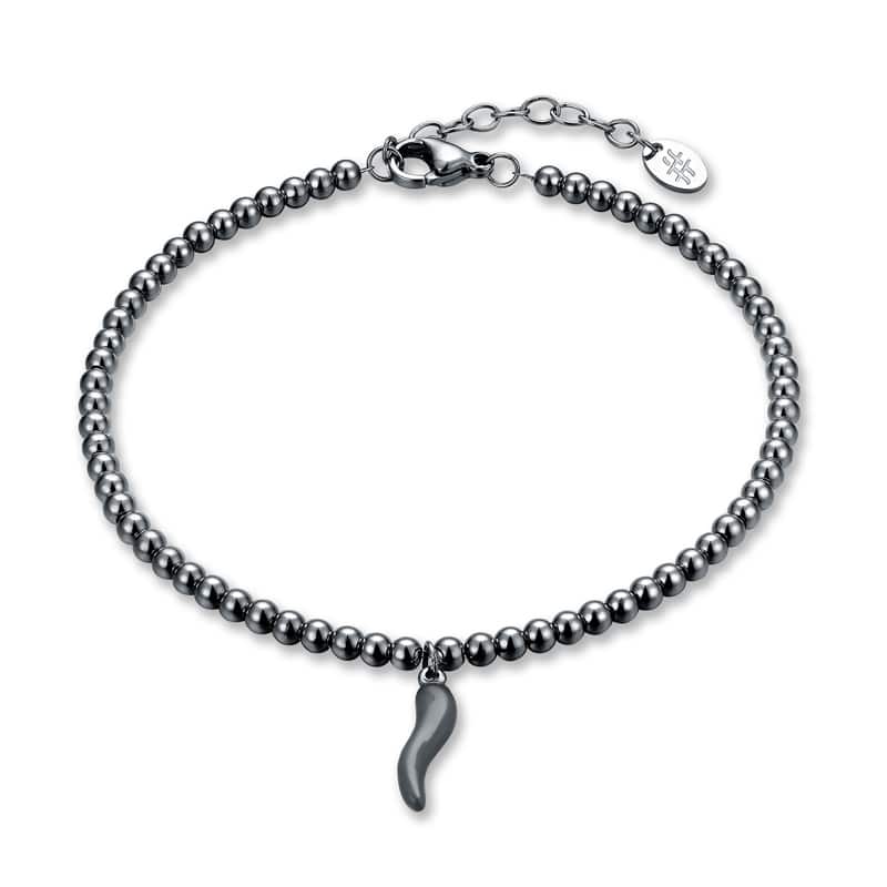 Bracciale Uomo a Sfere in Acciaio ed Ematite con Cornetto