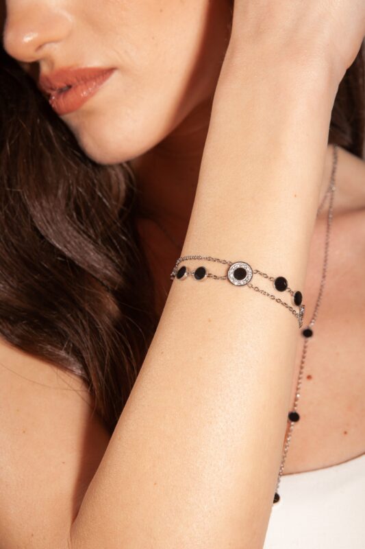 Bracciale Smalto Nero e Cristalli Bianchi