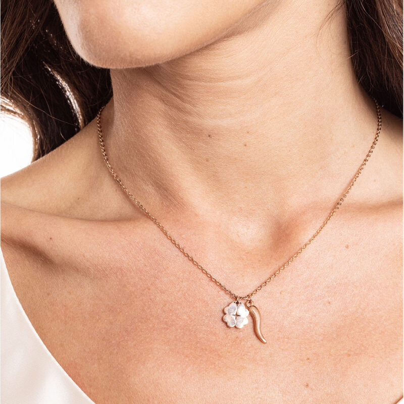 Collana Cornetto e quadrifoglio ORO