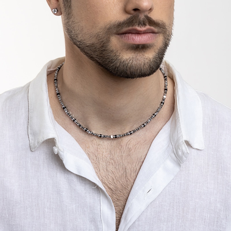 Collana da Uomo con Ematite Rodiata e Agata Nera