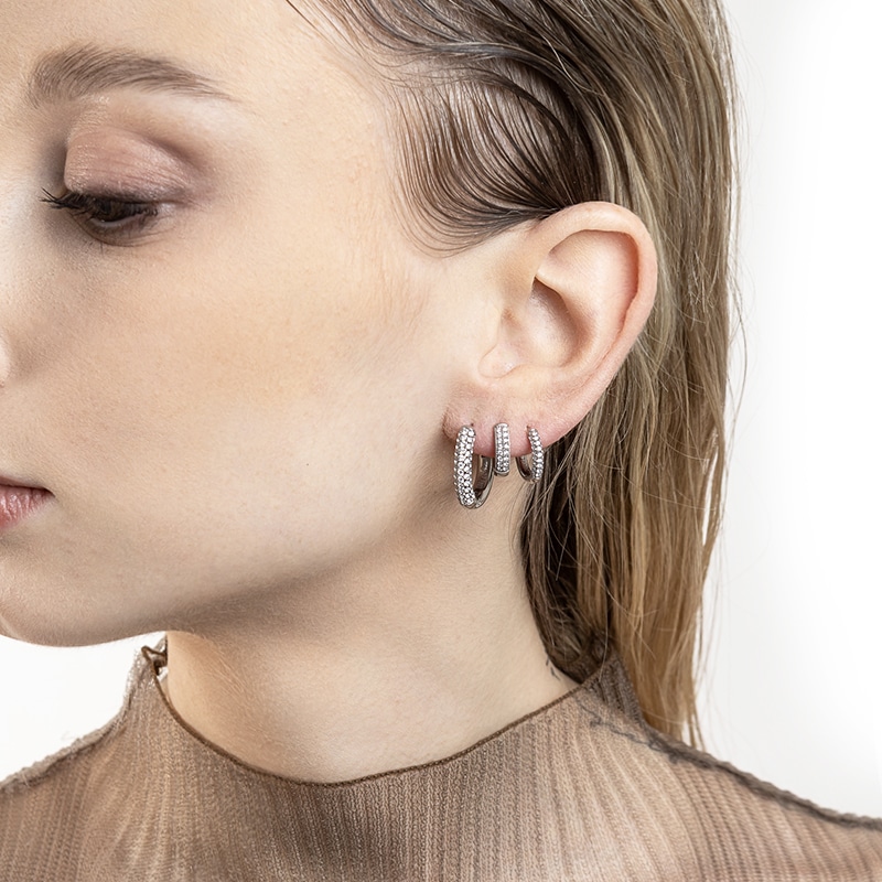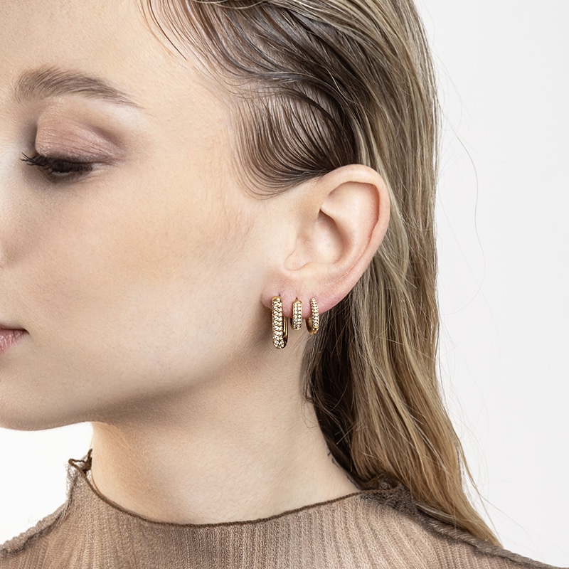 Gli orecchini a cerchio con 3 file di cristalli firmati #Brand Gioielli sono un accessorio essenziale per chi ama i gioielli luminosi, pratici e versatili. Realizzato in acciaio inossidabile, resistente e ipoallergenico, è disponibile in finitura acciaio o oro, perfetti per aggiungere un tocco di luce e personalità a qualsiasi look. Ideale come orecchino da indossare tutti i giorni o come regalo originale ed elegante, è pensato per chi cerca orecchini in acciaio che uniscano design minimal, comfort e un pizzico di brillantezza. Il loro design semplice li rende adatti sia ai look da donna che da uomo.