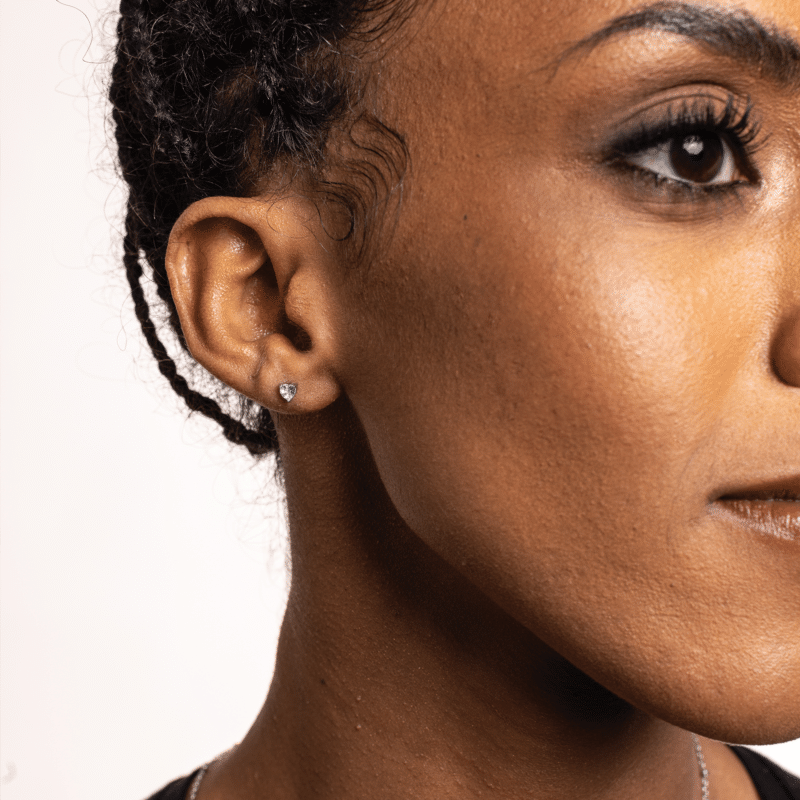 Orecchini con chiusura piercing con sfera filettata con cristallo a cuore bianco