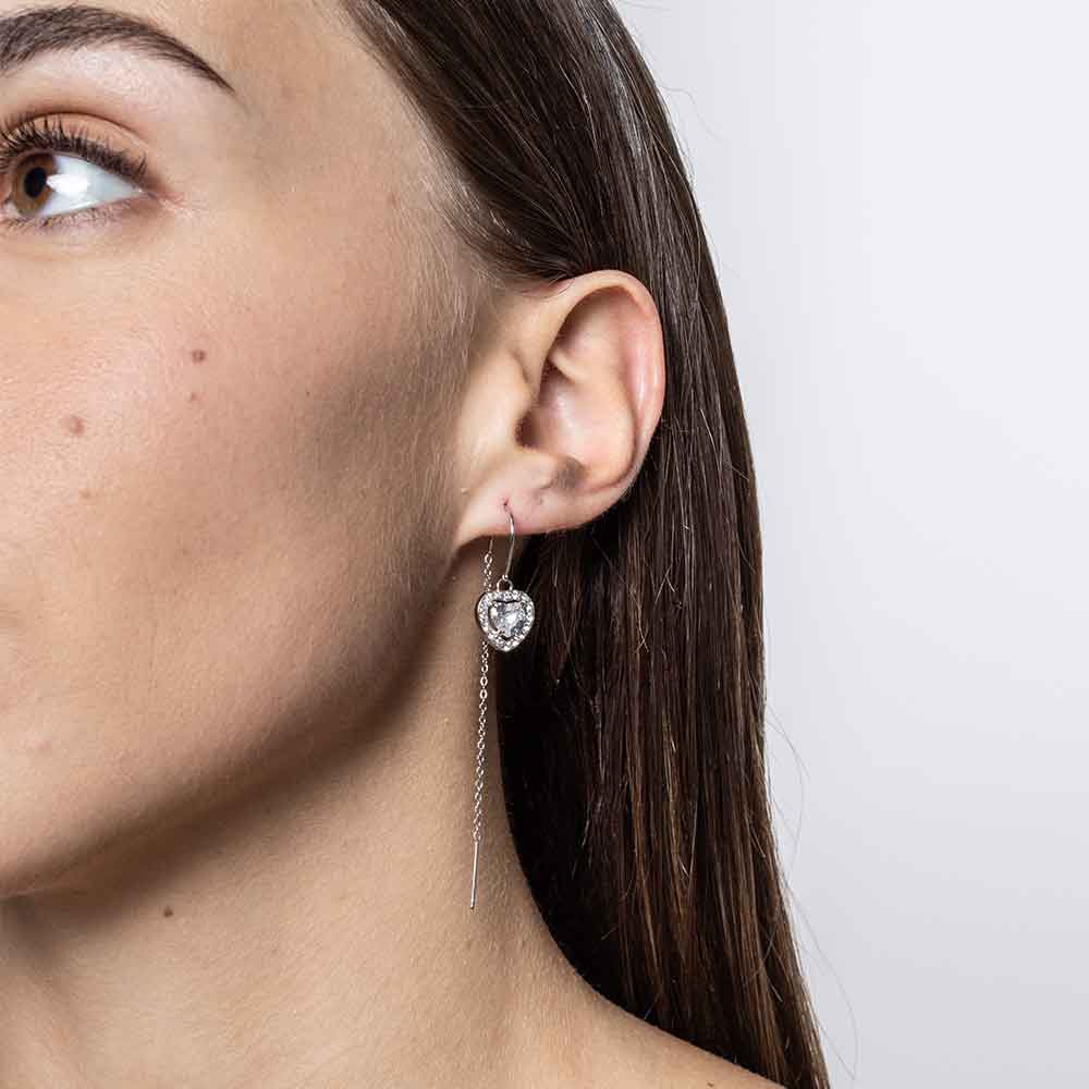 Orecchini saliscendi con cristallo cuore bianco pendente