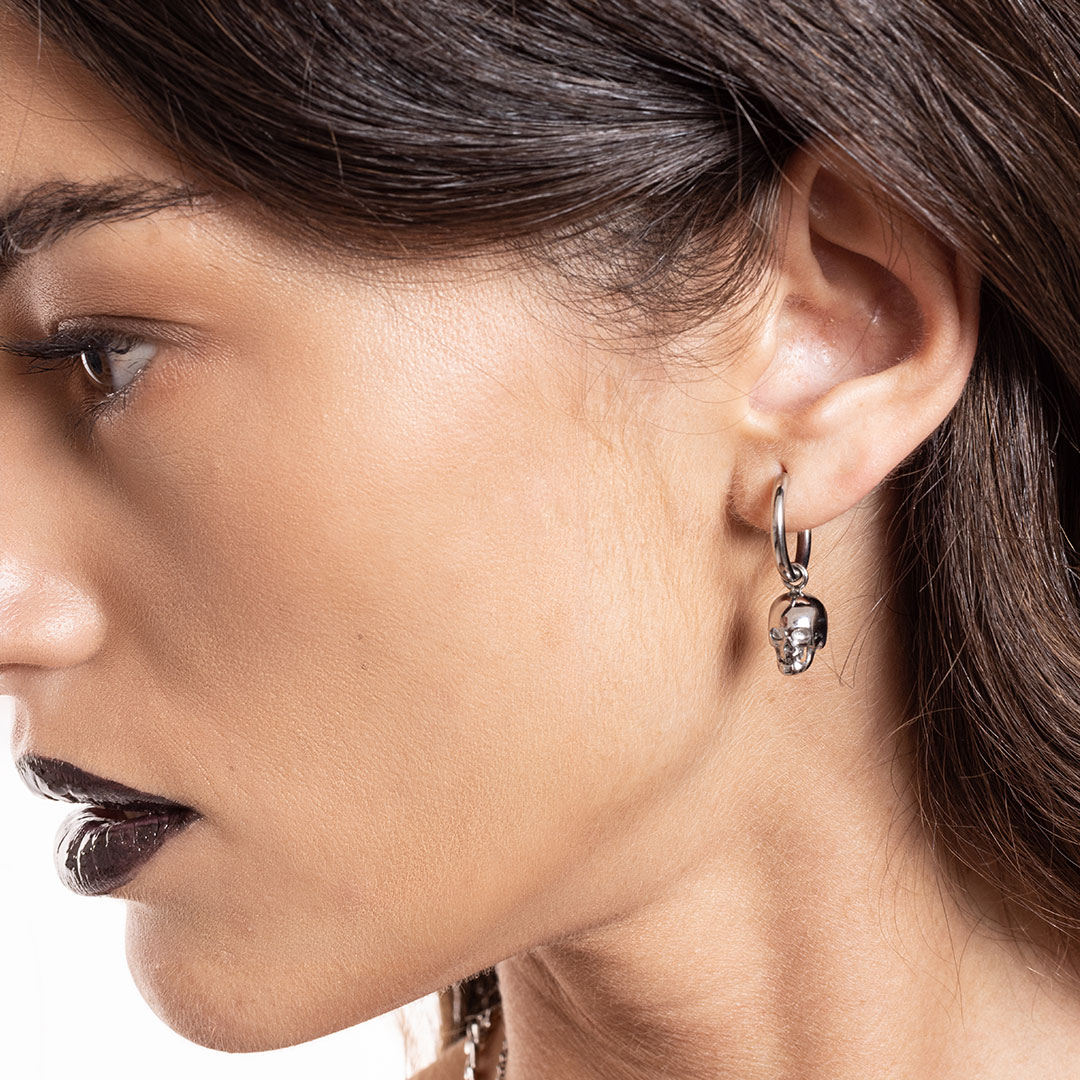 L’orecchino singolo a cerchio con teschio pendente firmato #Brand Gioielli è un accessorio dallo stile deciso. Esprime un carattere forte e si adatta perfettamente sia a un outfit casual quotidiano che a look più ricercati. Realizzato in acciaio inossidabile è disponibile nella versione acciaio e pvd nero. Design unisex, linee decise, carattere forte. Per chi vuole un gioiello che comunica identità, potere e indipendenza.