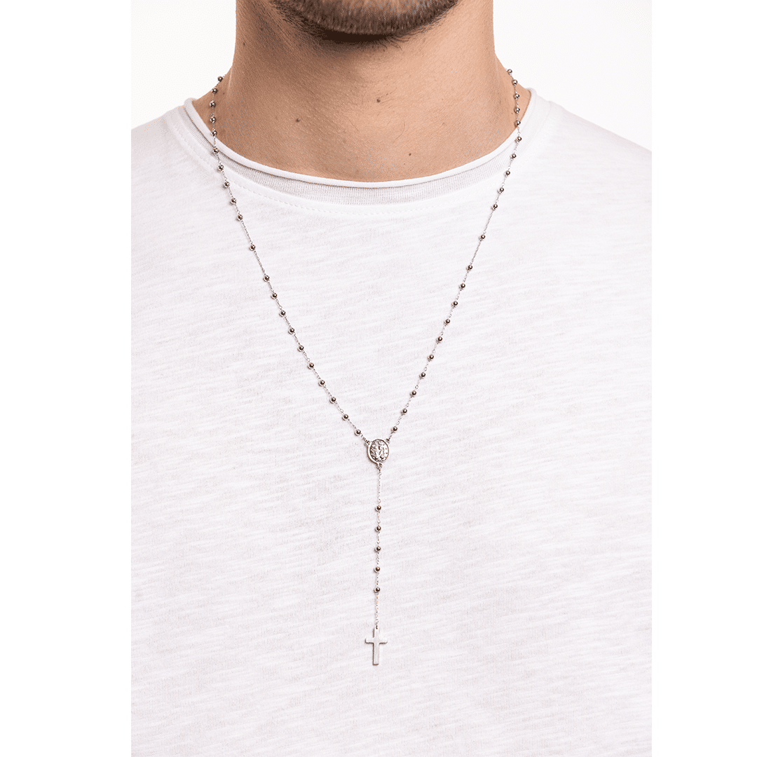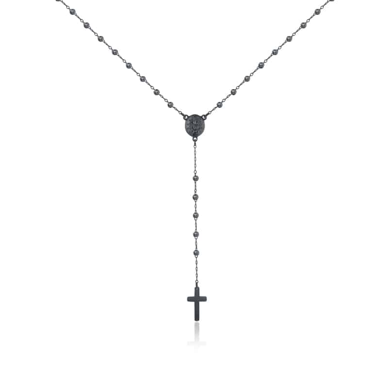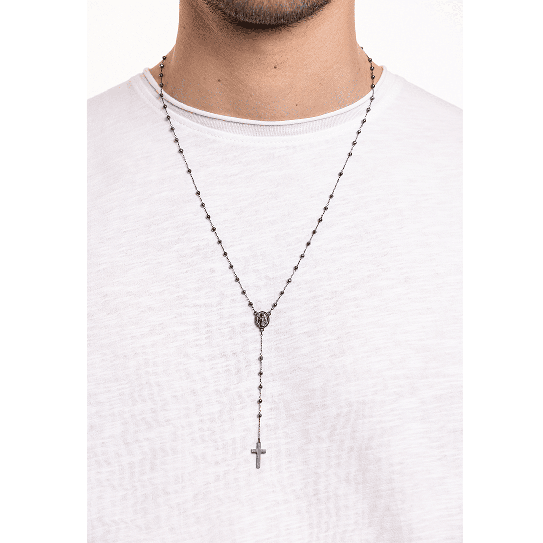 Rosario con Grani in Ematite e Croce in Acciaio Satinato